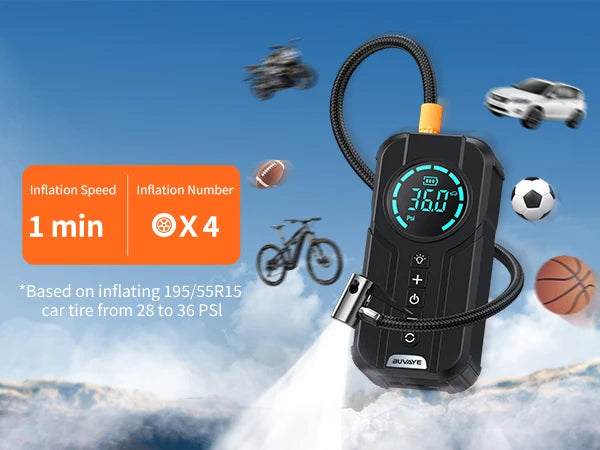 💨Fast & Accurate Inflation –  Air pump with digital LED display and auto shut-off for safe, precise pressure.
